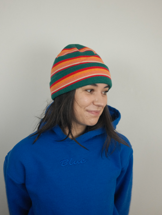 Blue Bison Striped Cuff Beanie